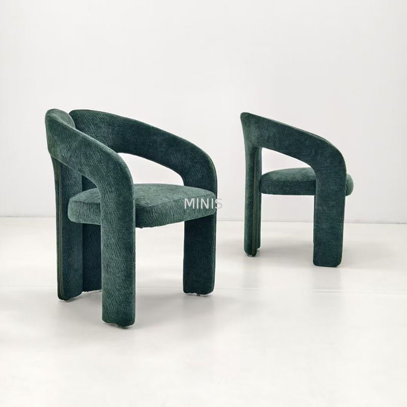 Envuelta en tela de terciopelo en todas direcciones, la silla irradia un toque suave, con un diseño simple pero no rígido que es un poco tonto y lindo, embelleciendo el espacio y brindando una atmósfera cálida y relajada.