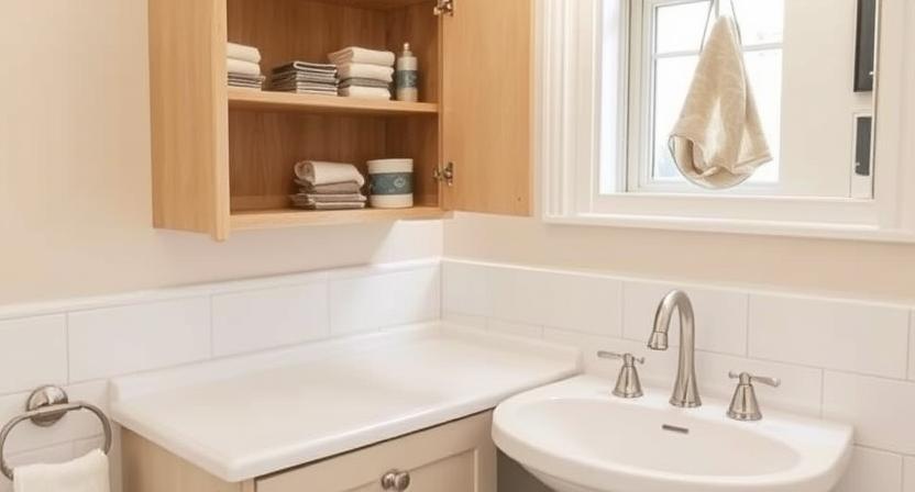 Utilice siempre masilla de silicona impermeable alrededor de los bordes y accesorios de plomería para evitar daños por humedad y extender la vida útil de su gabinete de baño.